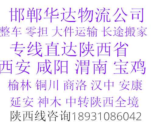 ★ 本站所l列邯鄲到西安貨運專線費用與時效僅供參考,如需詳細了解最低資費請電話咨詢。